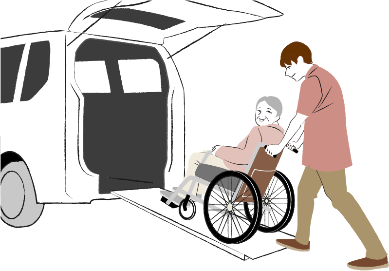お迎え デイサービスの送迎車にてご自宅までお迎えにあがります。 |