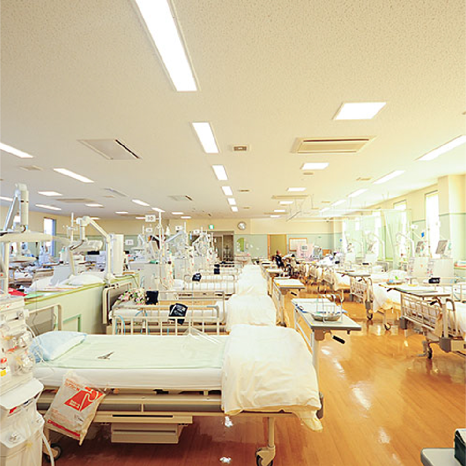 全面から陽光が差し込む明るく開放的な透析センターには、多くのベッドをご用意しております。
